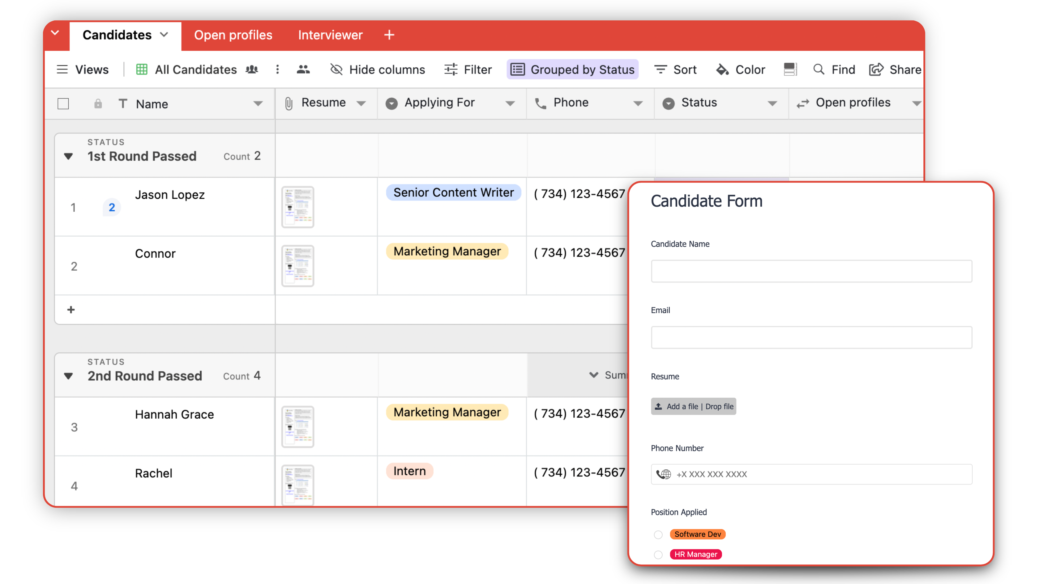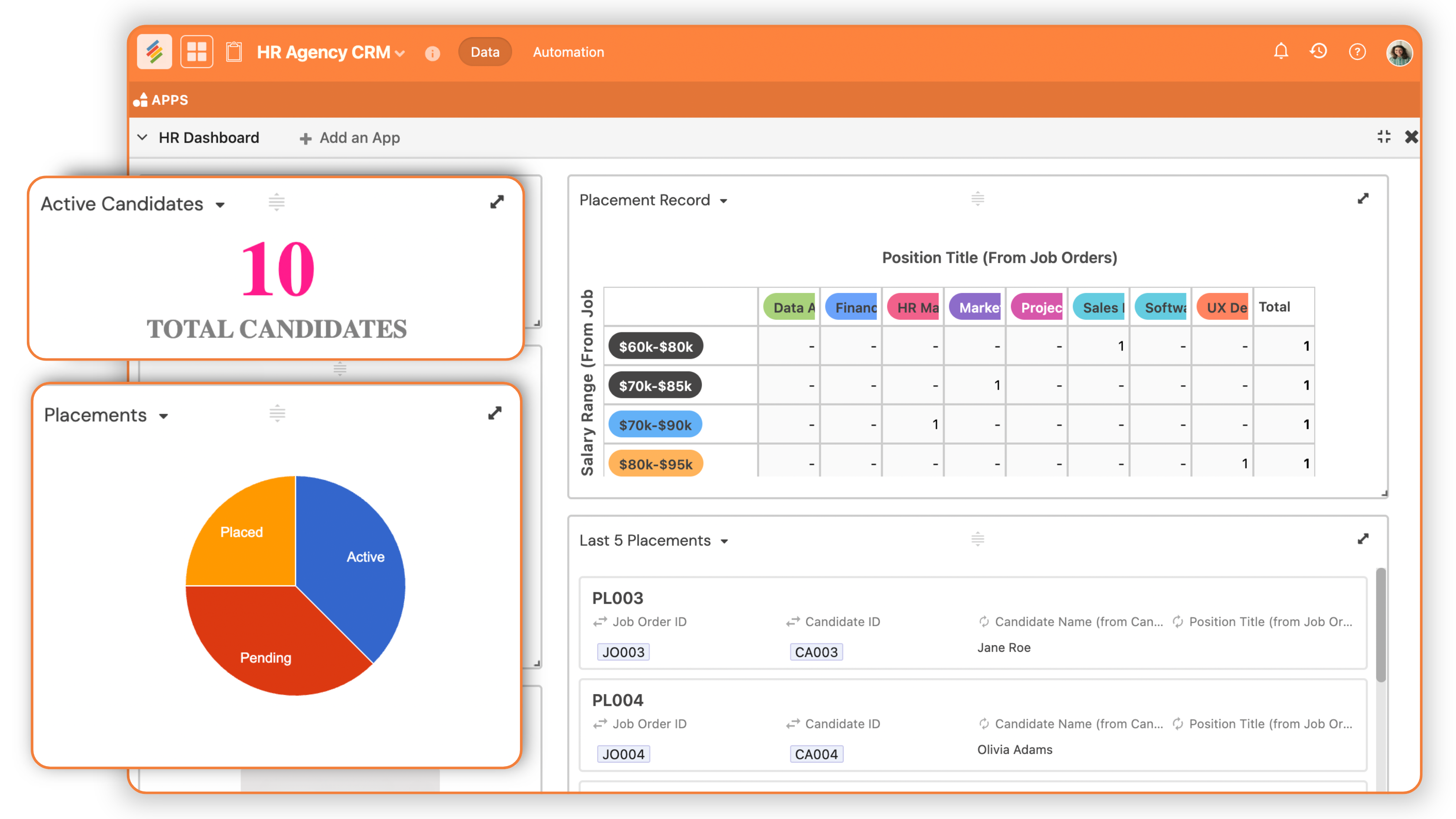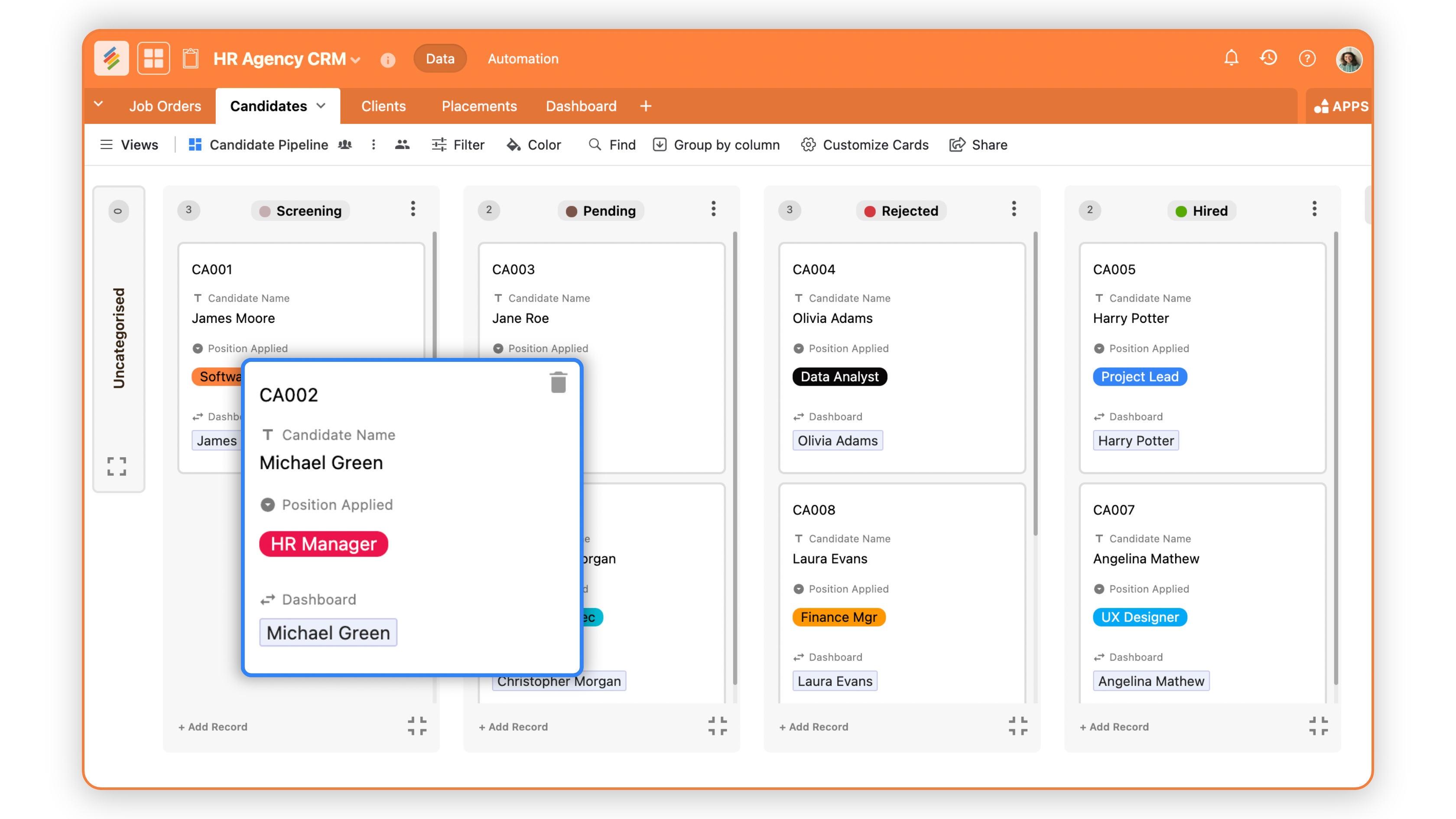 Yes! We've 1000s of recruitment agencies use Stackby to track their recruitment pipeline and CRM. You can build your complete applicant & recruitment database in Stackby, facilitate connections with your clients, collect client requests via forms, collaborate with your internal teams to manage pipeline and handle your HR agency operations at scale.