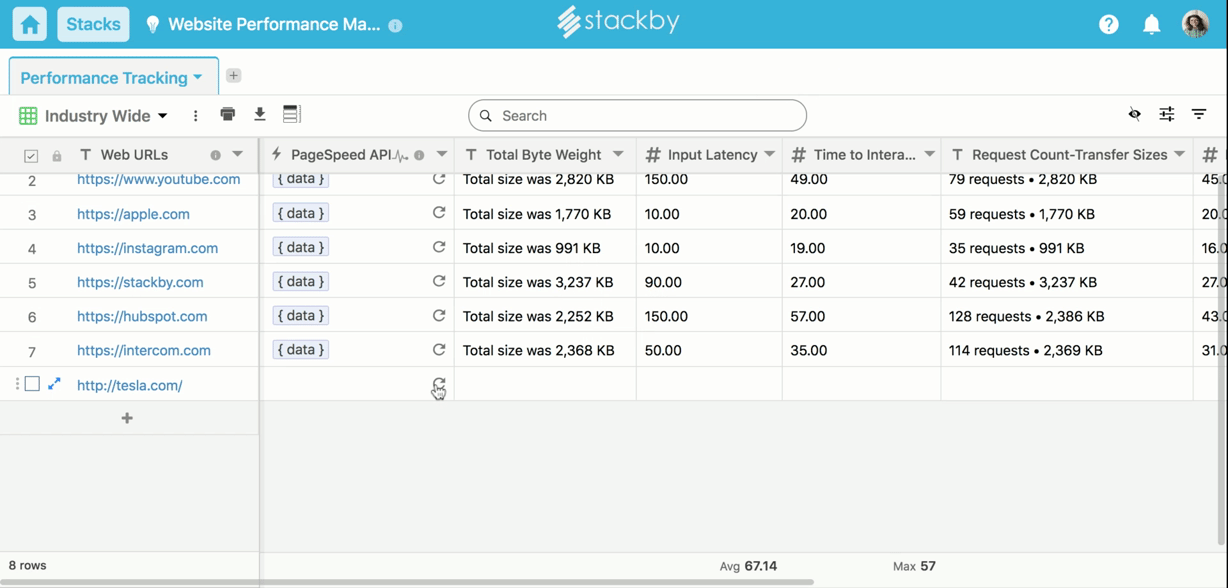 Now with direct Google PageSpeed Insights’ integration with Stackby you can pull in website performance and SEO audit reports easily and automatically of each of the webpage URL.