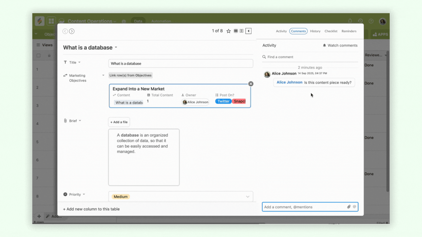 We've launched AI field agents that allow you to generate content (briefs, captions, descriptions etc.), summarize text, analyze documents and images and even translate campaigns at scale. Whether you're managing your AI content calendars, to building an automated brand checker to even generating AI social media posts - the possibilities with AI + marketing workflows is endless. Integrate with OpenAI, Anthropic or Gemini, bring your own API keys and let the AI magic transform your marketing workflows.