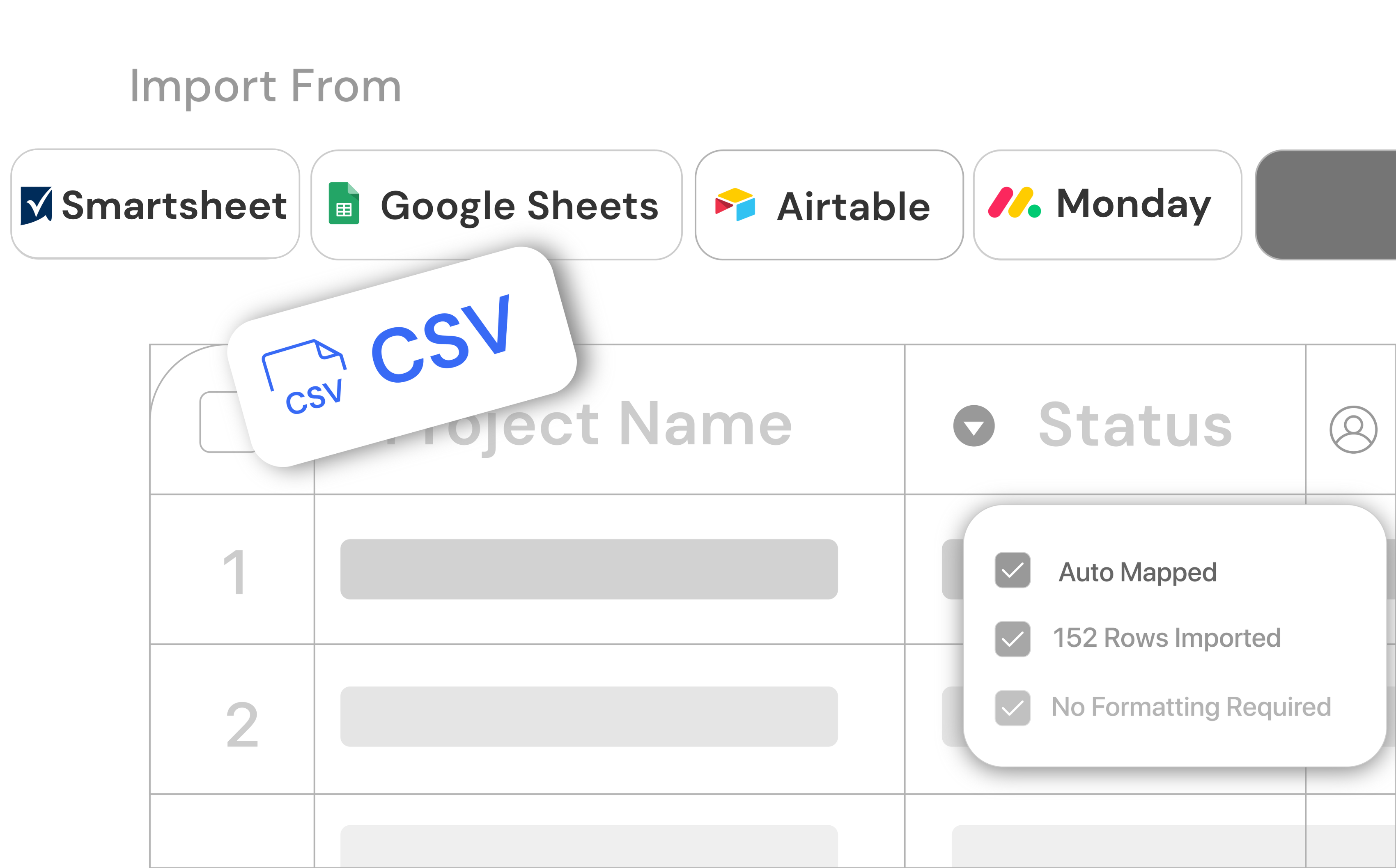 Upload your spreadsheets or import data from your other tools instantly - no setup or formatting needed.
