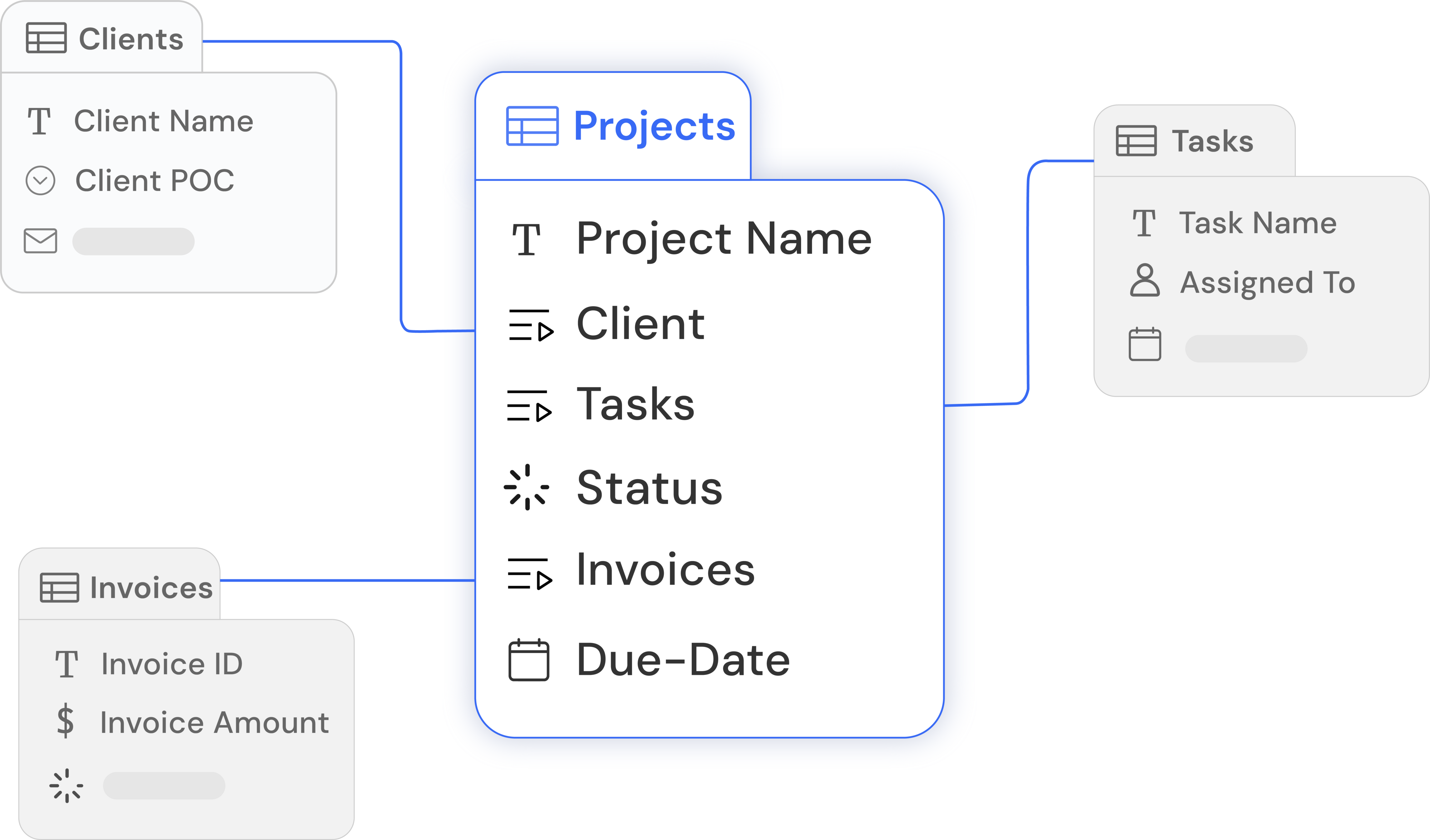Start by creating tables and linking them together to create customizable databases for any workflow. Bring data from anywhere - spreadsheets, automations, forms, API or webhooks.