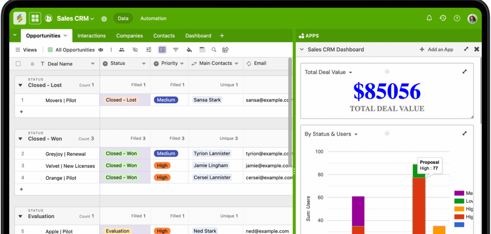 Bring your data, teams and workflows in a single collaborative platform. Easy as a spreadsheet with power of a relational database. Powered by AI.