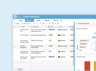 We've product teams & agencies across the globe that use Stackby to manage their end-to-end product development processes. Since the platform is entirely flexible & customizable, the use-cases are endless. Some of our popular use-cases are: Product Roadmap, User Research, Bug Reporting & Feedback Tracker, Sprint Planning, Client Trackers etc. with automations using JIRA, Slack and Email.