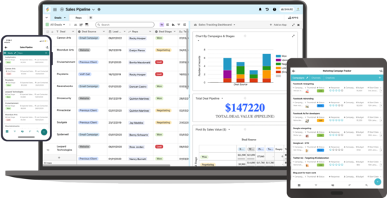 Build custom dashboards with charts, pivot tables, time tracker and more to take control of your data and actions.
