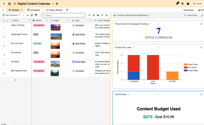 Use Stackby's out the box apps to create your custom reporting dashboard. Analyze and bring real-time insights with custom charts, pivot table, summary bars and more.