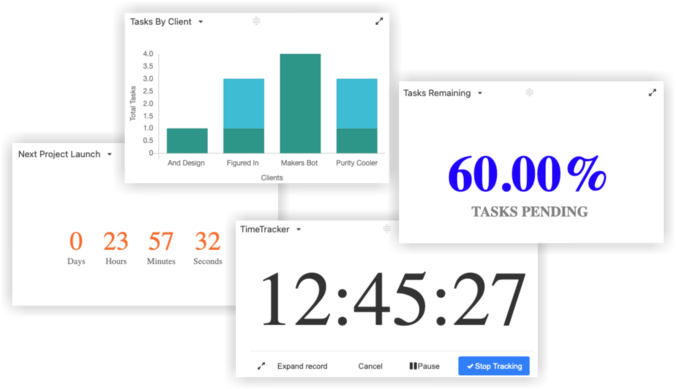 Yes. Stackby offers easy-to-use reporting dashboards that provide you with complete insight into your projects. You can track the right metrics that define your project’s success with Charts, Pivot Tables, Time Tracker, Countdown & Goal trackers etc. and share the data with your clients, team members, or stakeholders.